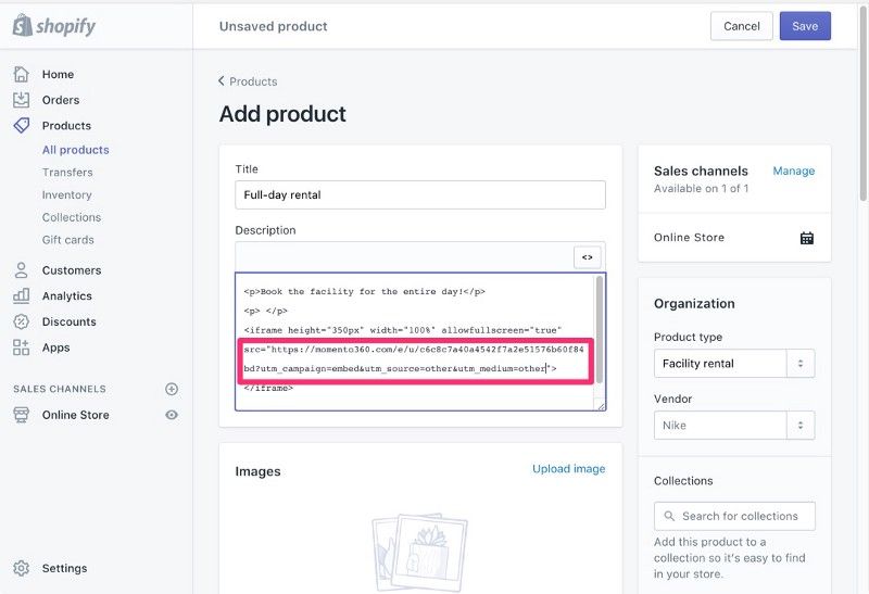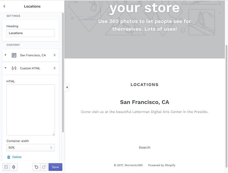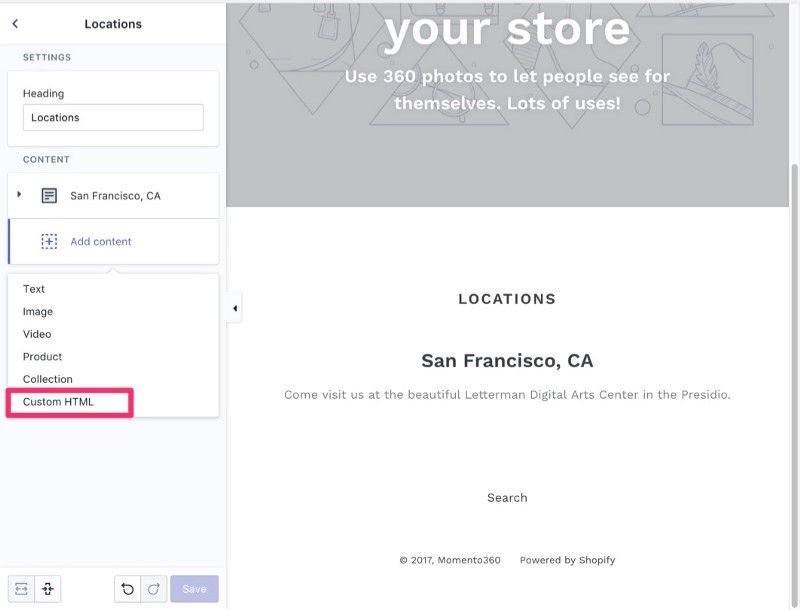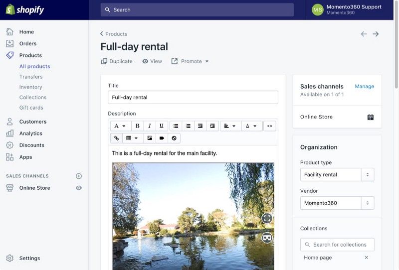 Never fear — it’s actually pretty easy once we show you how! Here we’ll give you a step-by-step tutorial of how to embed 360s into your Shopify website using Momento360. It’s deceptively simple to do. (Note: this is not for displaying 360 models of items, that’s a different kind of 360. These 360 photos are best for store interiors, environments, etc.) :