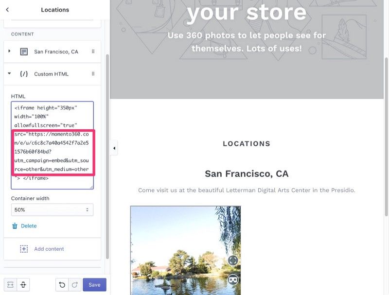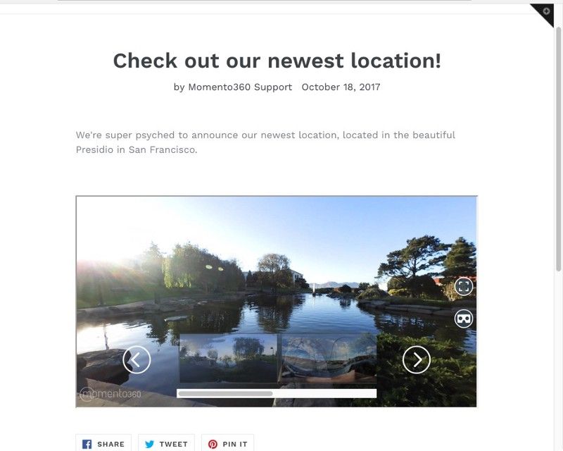 Pro Tip: Momento360 also supports embedding 360-degree photos in other website services or on your own site. Here’s how: