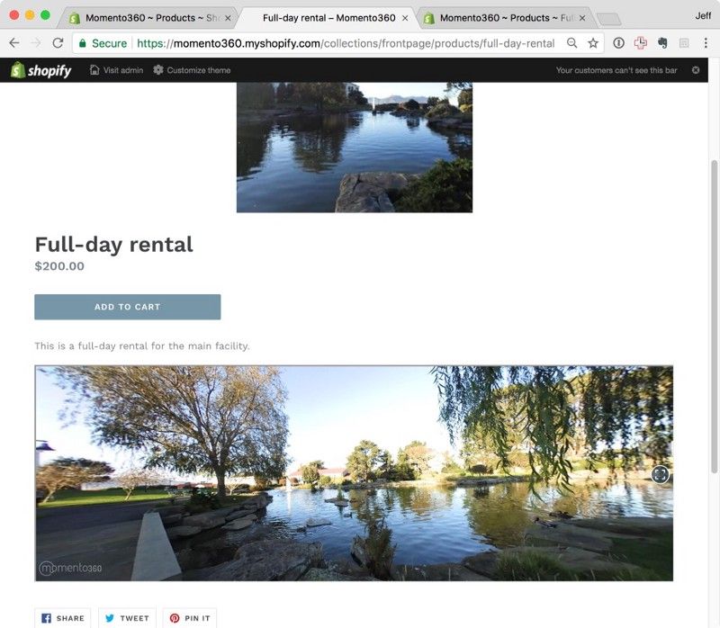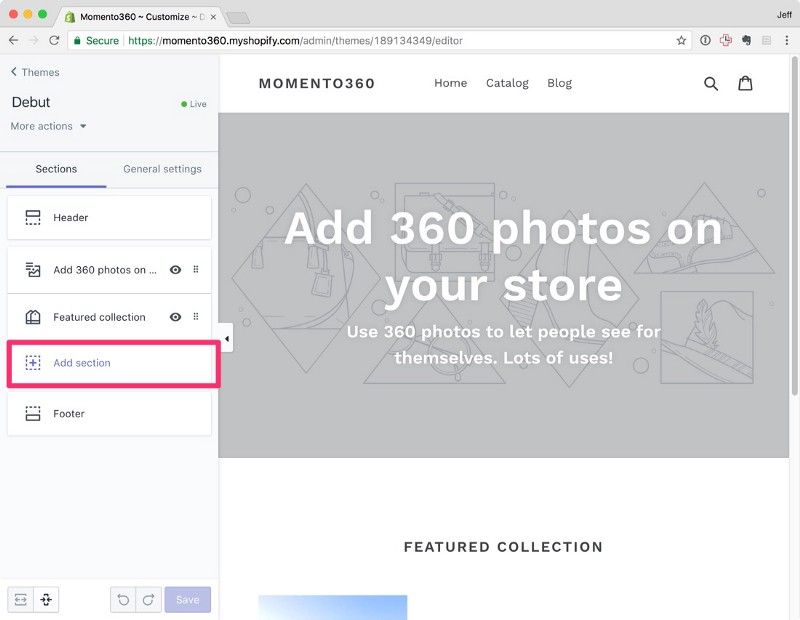 You can add 360s on different parts of your store: as part of your main theme, on individual product pages, or in blog posts. We’ll show you how to add them to the main theme, and then to a product listing.