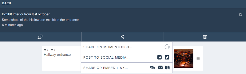 Collections on Momento360 allow you to embed/send a single link to a group of images and/or videos. Select the thumbnail to switch images; drag to move the camera.
