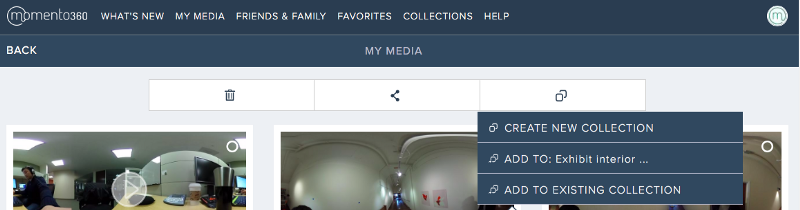 These can be a mix of 360 photos and videos. When you’re done, click on the Collections icon and select the Collection you want to add them to.