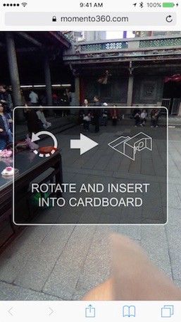 When they tap on the icon above, they’ll be prompted to rotate their phone into landscape (if it’s not already), and the screen will go into VR mode. All they have to do is put the phone into their viewer and look around.
