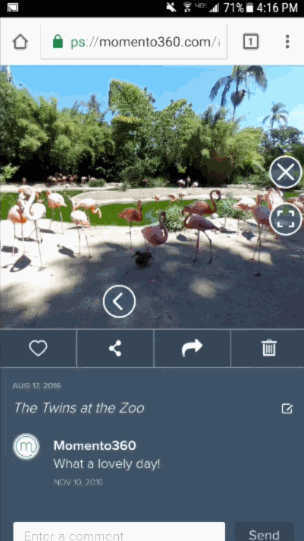Momento360 enables you to make the most of your 360 photos and videos. Upload, view, and share — privately or publicly — on the web and in VR.