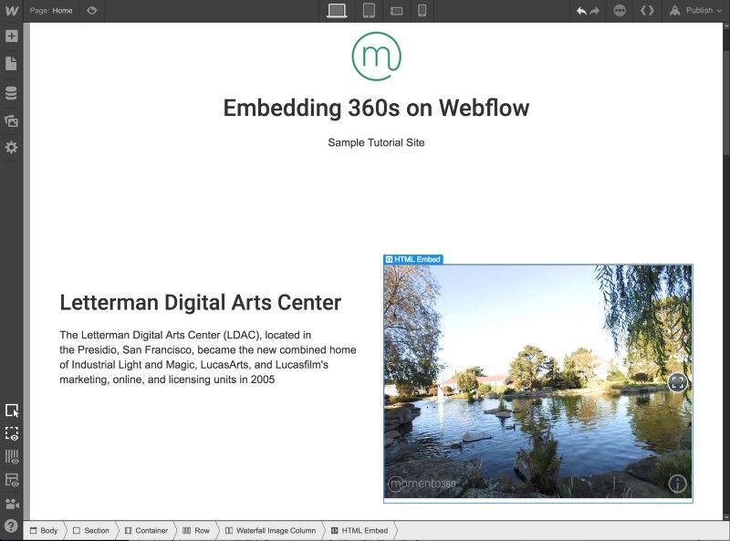 Never fear — it’s actually pretty easy! Here we’ll give you a step-by-step tutorial of how to embed 360s into your Webflow project using Momento360.