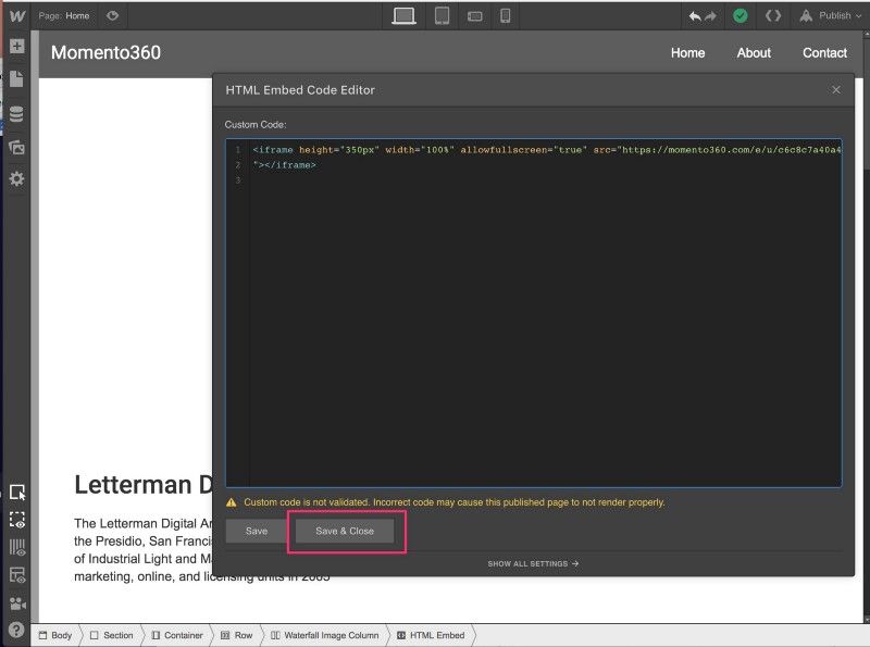Pro Tip: Momento360 also supports embedding 360-degree photos in other website services or on your own site. Here’s how: