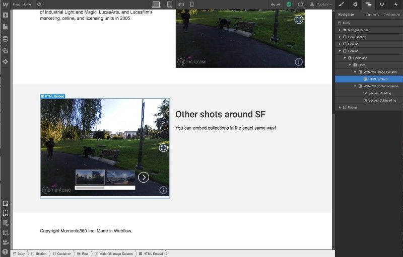 You can follow the same steps to embed a Momento360 collection on your Webflow site the same way:
