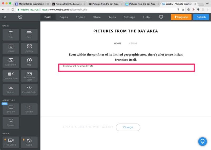 You can follow the same steps to embed a Momento360 collection on your Weebly site the same way:
