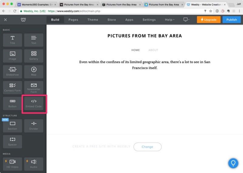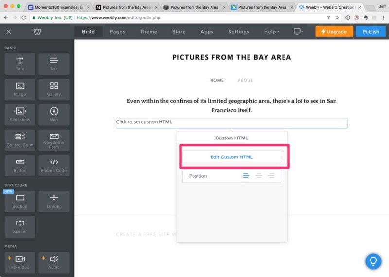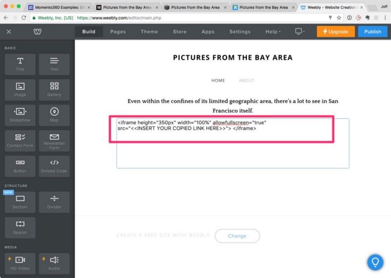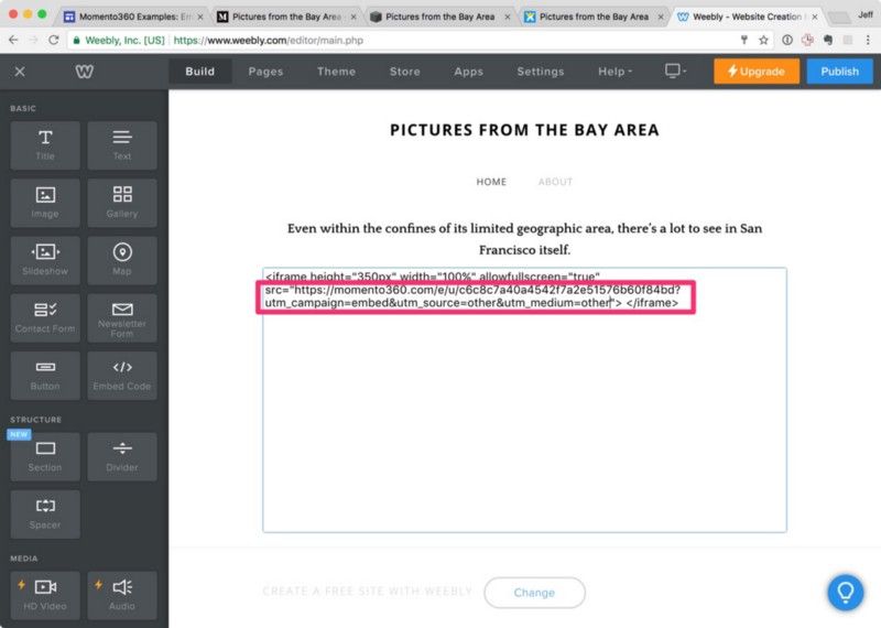 How to embed 360 photos in your Weebly website