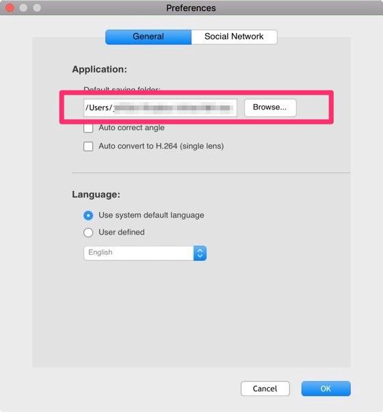 Under Gear360 > Preferences menu, set the folder where you’ll want to store your stitched/processed 360s. (It’s called “Default saving folder”)